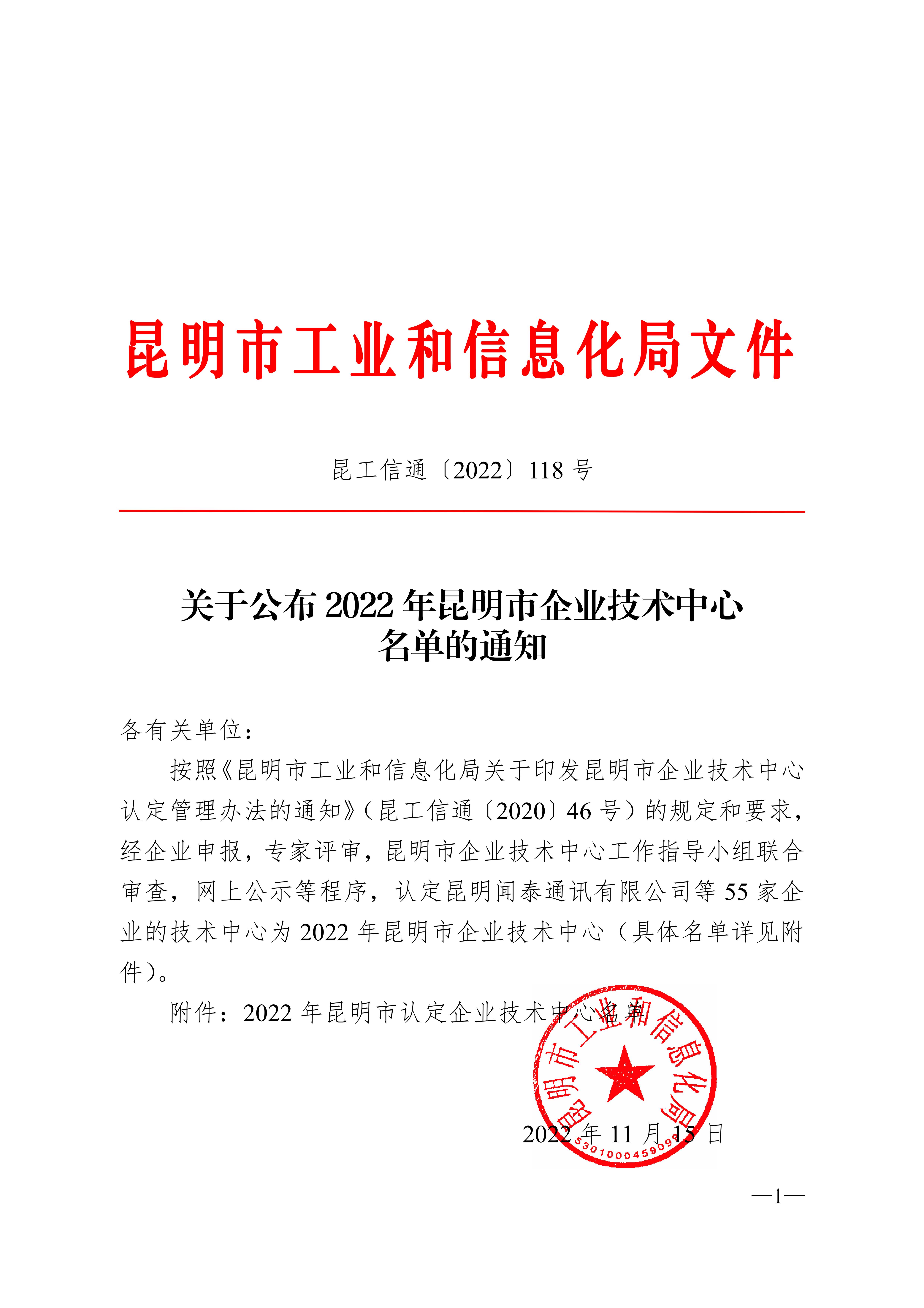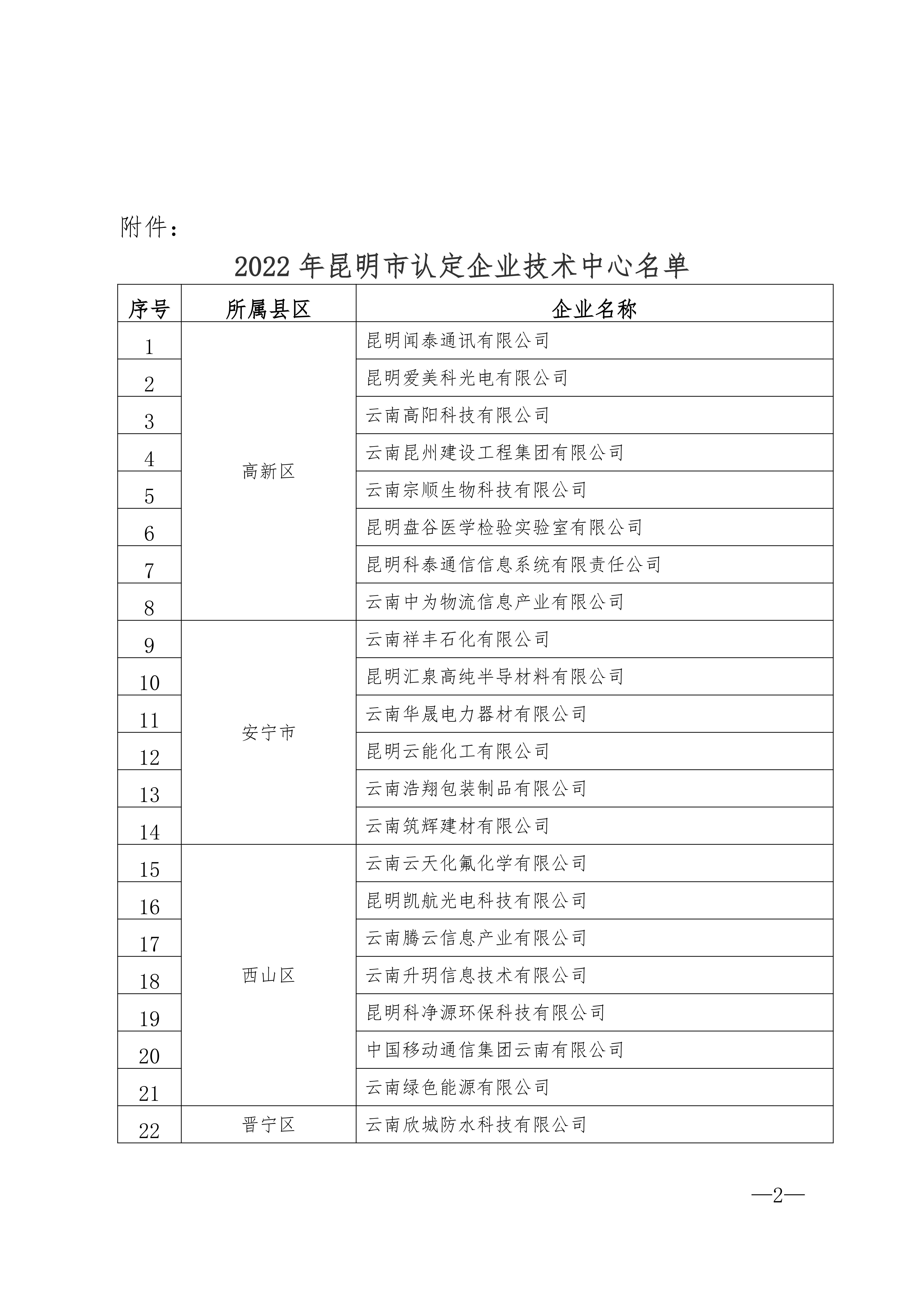 認(rèn)定為2022年昆明市企業(yè)技術(shù)中心