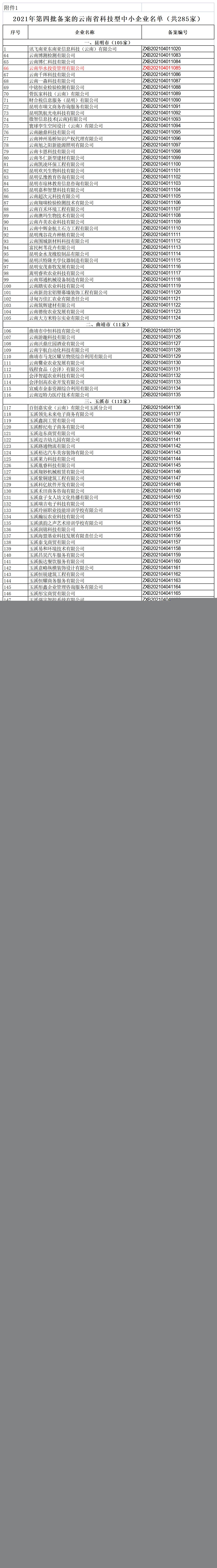 2021年第四批備案的云南省科技型中小企業(yè)